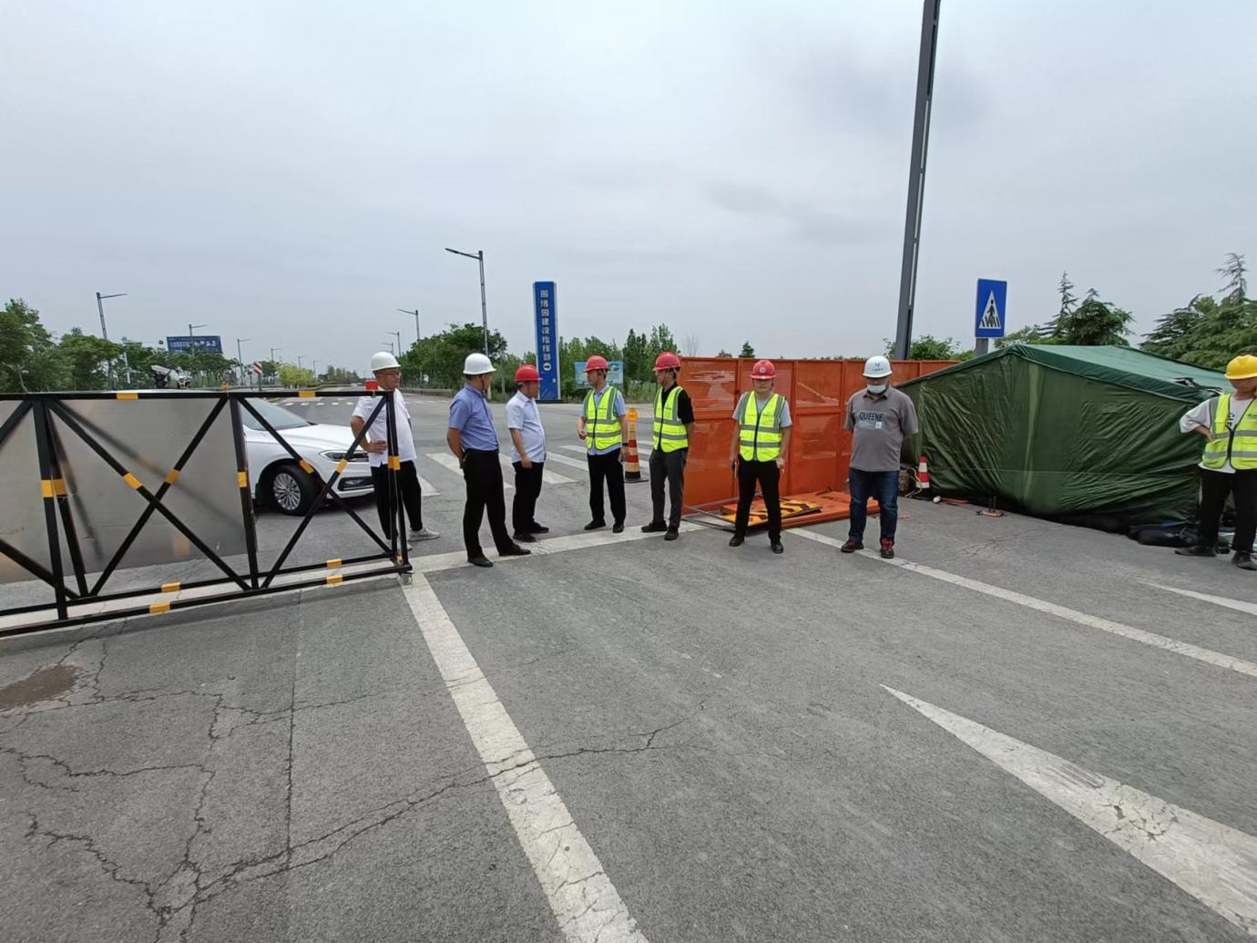 本次检查中,交通集团领导和第三方检测单位对徐新路园博园项目的现场安全管理和文明施工给予了较高评价,并强调要加大安全巡查力度,警示标牌的设置要根据路况和天气情况及时更新完善,及时消除道路安全隐患,确保安全和文明施工。