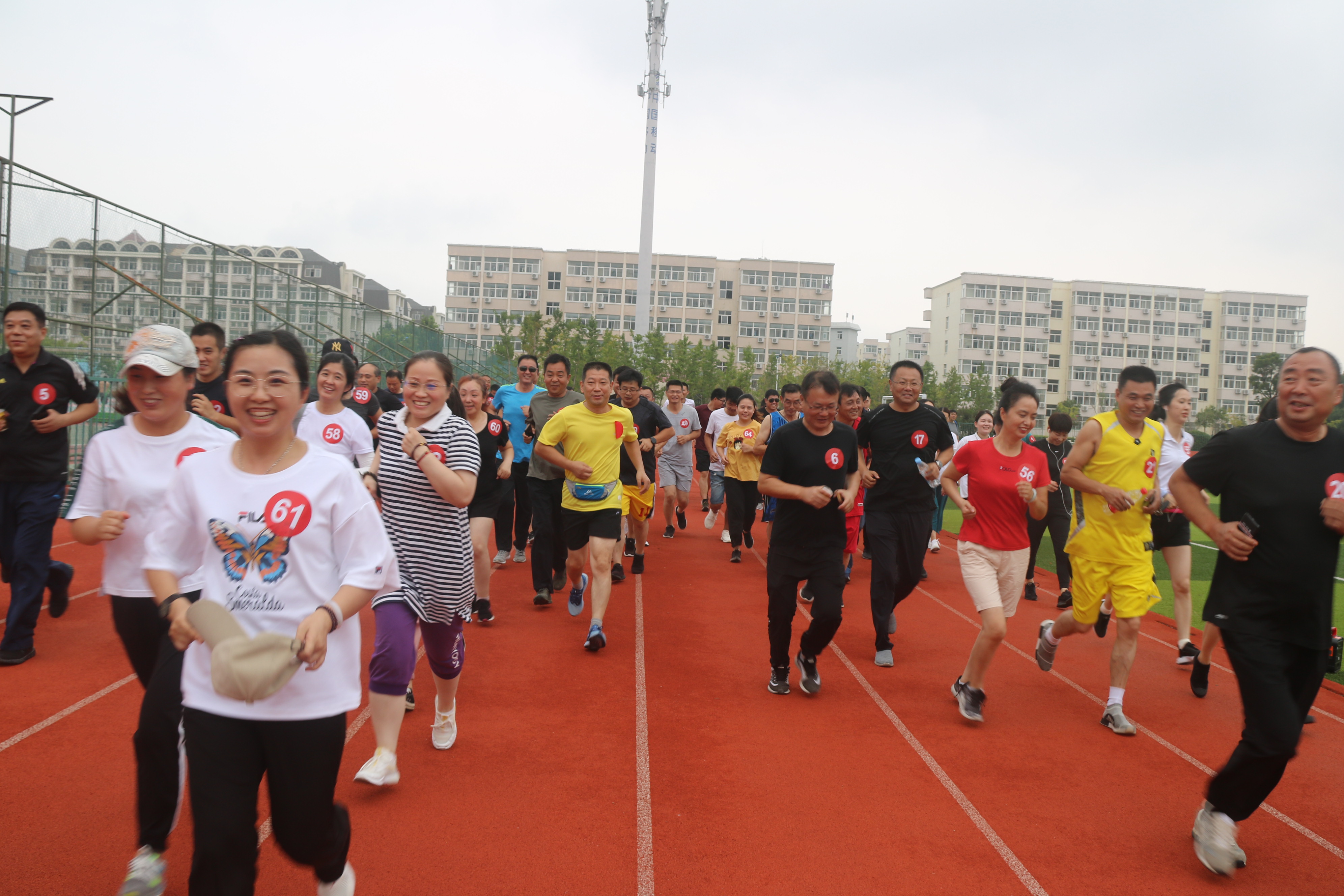 为切实提高应急队员的体能素质,着力提升应急救援能力,8月22日下午,集团在江苏海洋大学体育场跑道,开展了以“为救援奔跑、为健康加油”为主题的应急队员5公里拉练赛,集团安委会成员、各级安管人员、部分驾驶员及长安保险公司总经理董洪霞一行共80余人参加了拉练赛活动。