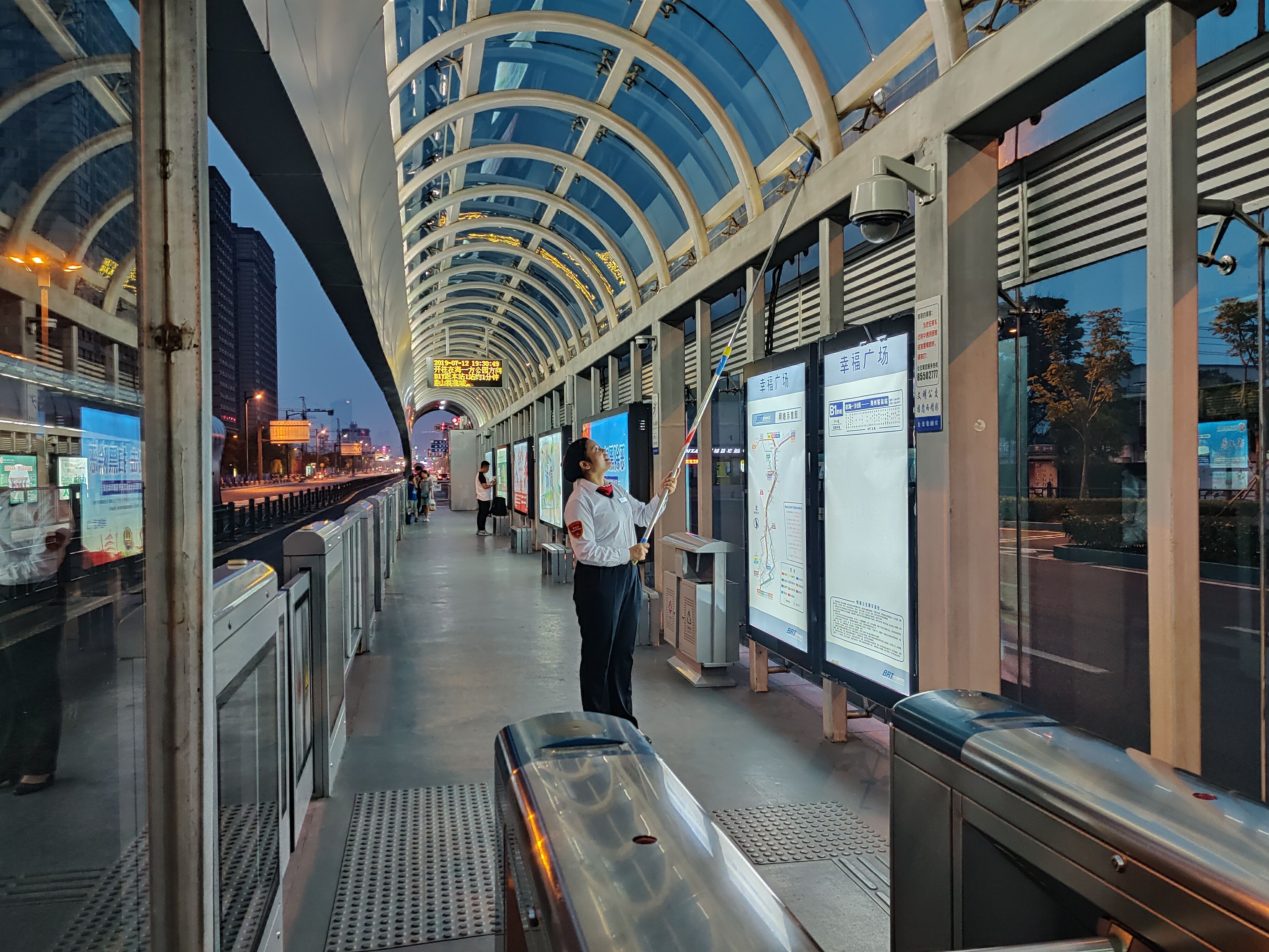 这个点,许多人已经吃完了晚饭,有些甚至已经和家人散完步准备洗漱入睡,我们的站务员们还坚守在岗位上,送完常规线的最后一班乘客,她们还会迎来夜班线的第一班乘客。别看她们外表柔弱,关键时刻,她们也是为乘客化解过矛盾,给危在旦夕的乘客做出最快急救措施的人,她们是港城公交人里的铿锵玫瑰。