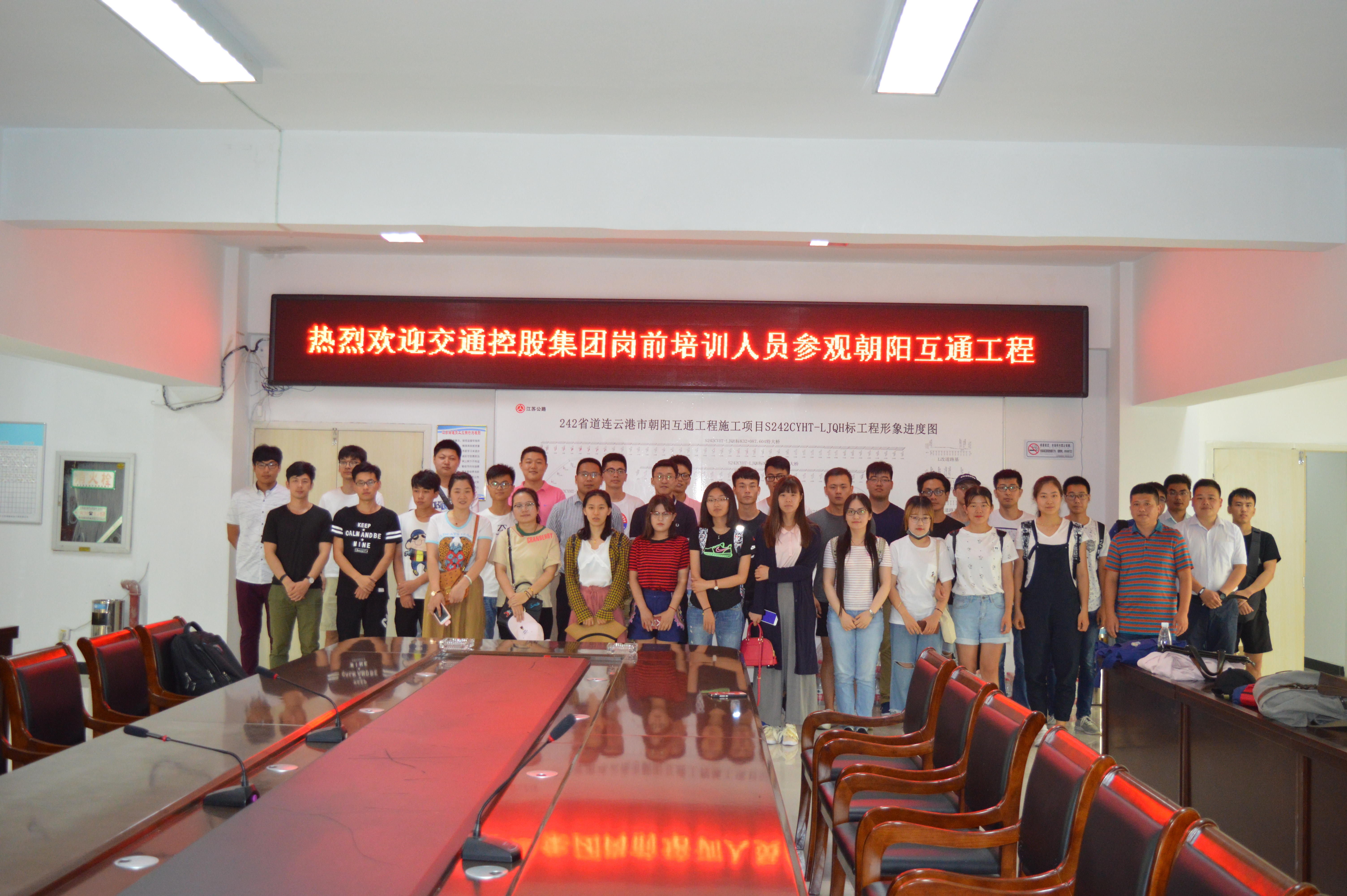 7月28日,交通控股集团人力资源部带领30多位岗前培训人员到朝阳互通项目部参观学习。