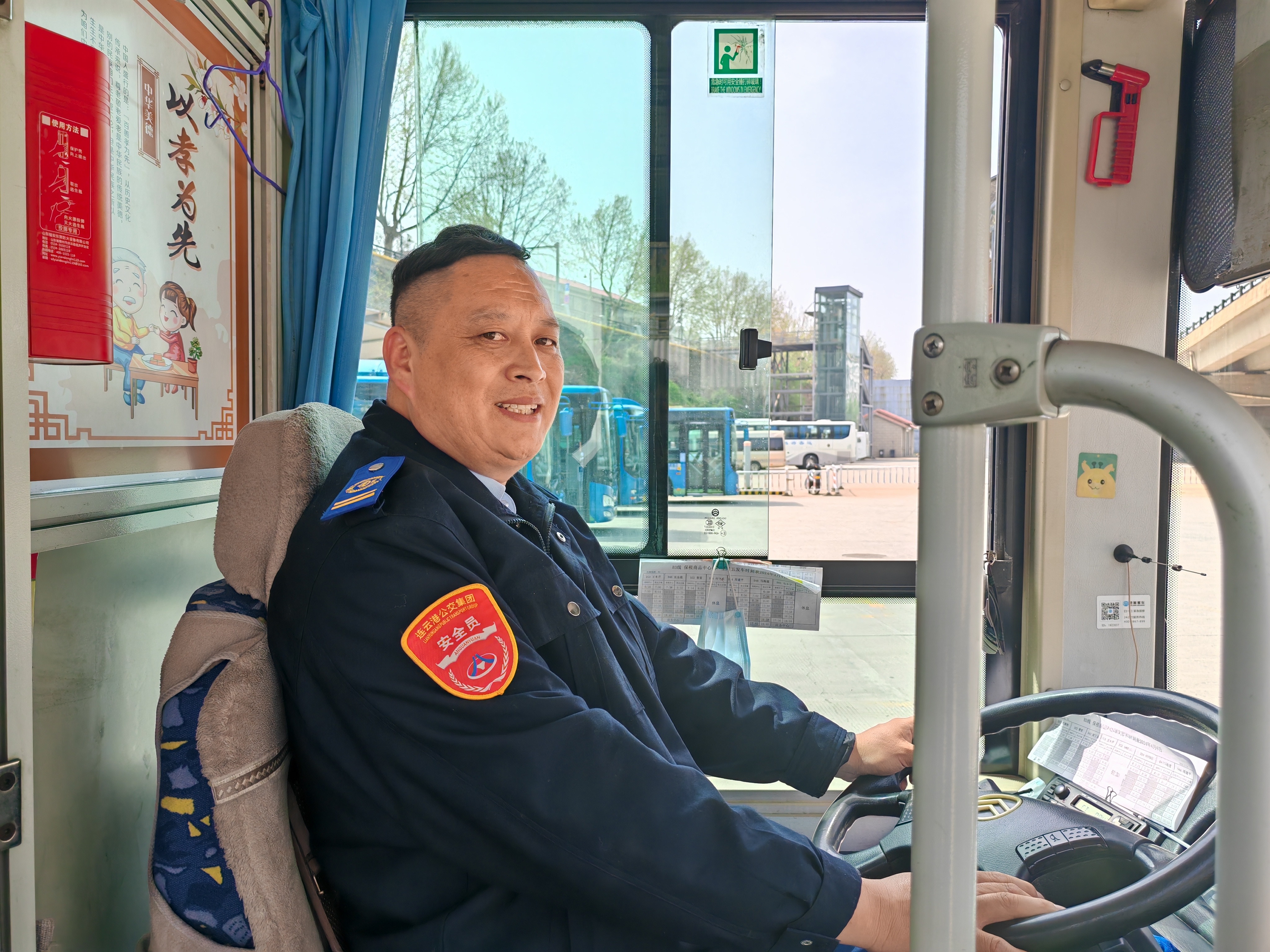 4月11日中午12点半左右,B12线驾驶员王海平驾驶苏G51818车由华东城开往海州客运站方向。当车辆快行驶至四季金辉站点时,突然车厢内出现一阵惊呼,王海平从车厢内后视镜观察到后门踏板处坐着一位老人,好像有些不舒服,于是他立即将车安全停靠在四季金辉站台打开车门让车厢内空气流通起来,然后上前查看情况。